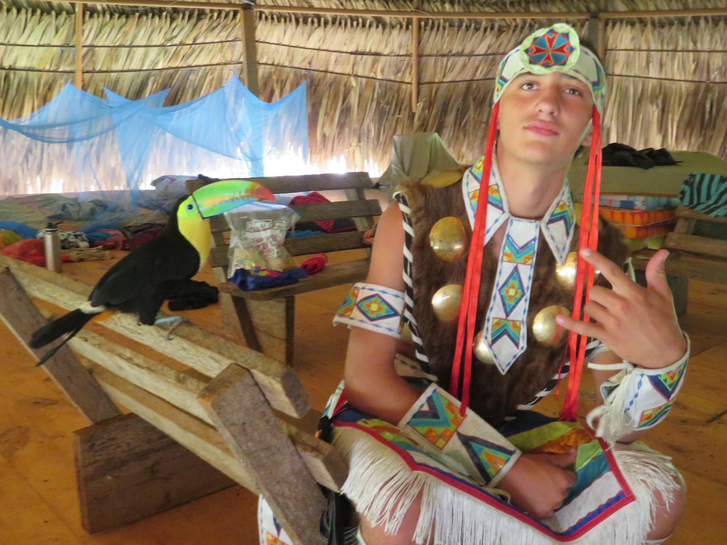 Hawk with his buddy Tony the Tucan in Embera Quera community of Panama, Central America